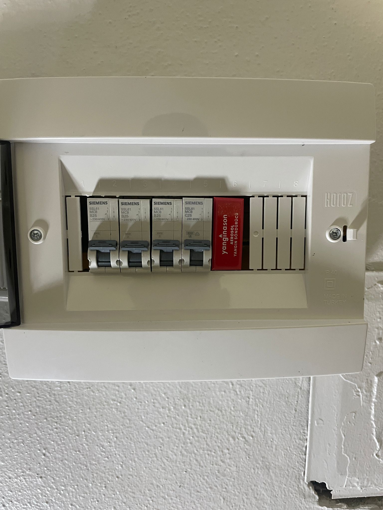 Kısa devre, aşırı ısınma ve kıvılcım kaynaklı yangınları henüz başlangıç aşamasında algılar ve otomatik olarak söndürür.